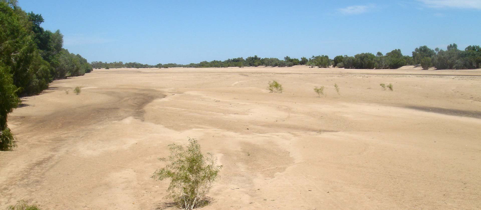 Nach einer etwas längeren Vorbereitungsphase bin ich endlich unterwegs und der erste Tag meiner Tour rund um Australien ist soeben in einem Flussbett zu Ende gegangen. Ich wollte eigentlich auf einem Campingplatz übernachten, doch die Besitzer waren sehr unfreundlich, von Hilfsbereitschaft für Radfahrer keine Spur.