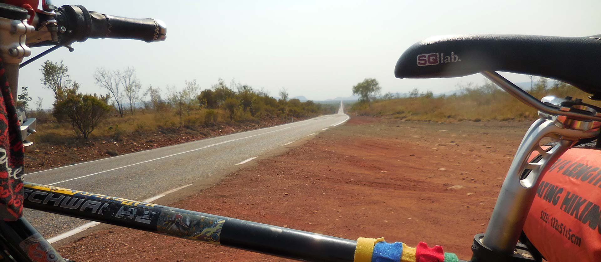 Die Geschwindigkeit mit welcher ich mich bewege erfordert keine grosse Konzentration. Dies erlaubt mir, mit meinen Gedanken dahin zu wandern wo ich sein möchte. Diese geistigen Wanderungen sind bei einer Autofahrt gar nicht möglich ohne sich selbst und andere Menschen in eine gefährliche Situation zu bringen. Mit dem Fahrrad im Outback ist dies ganz anders.