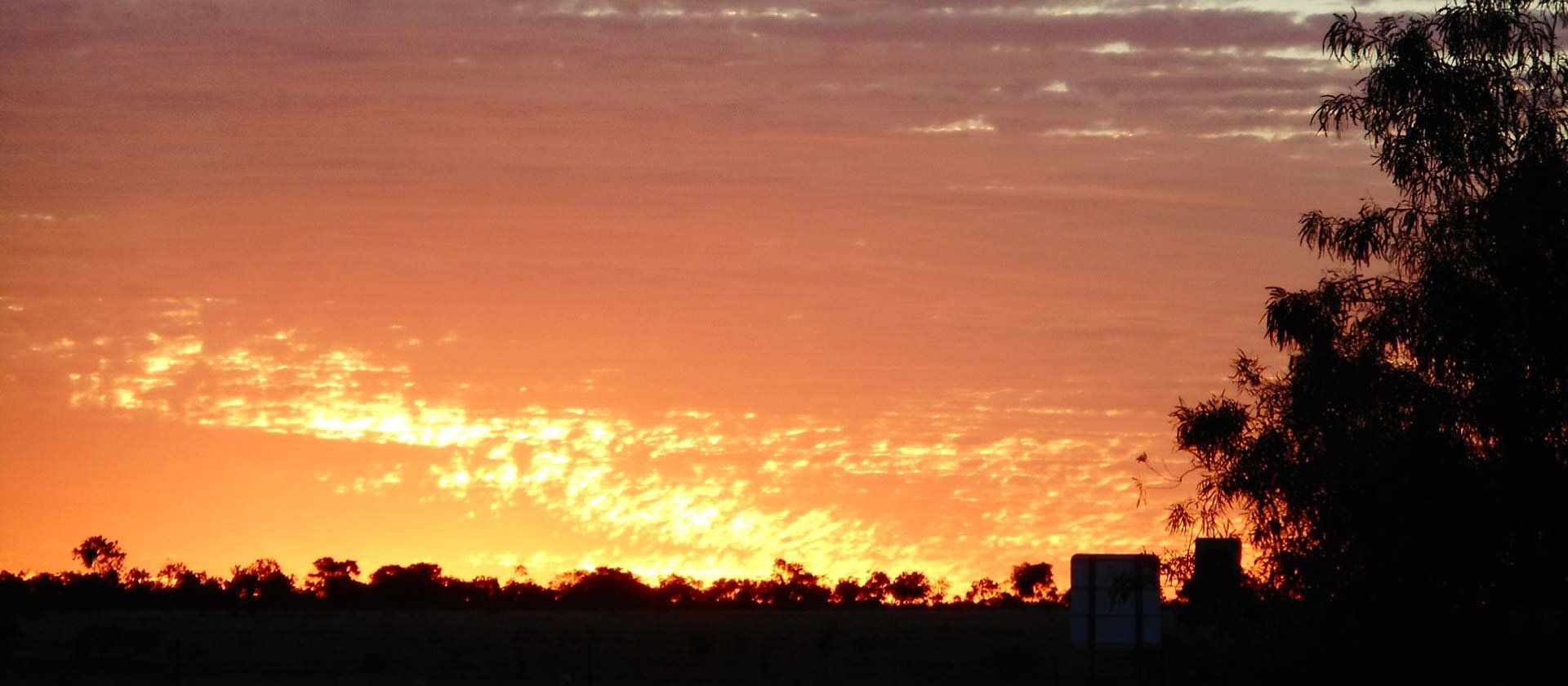 Die Sonne wird in den nächsten Minuten wie ein roter Feuerball über den Hügeln am Himmel stehen. Ein weiterer Tag auf dem Fahrrad geht dem Ende zu. Der Wind hat sich wie üblich um diese Tageszeit gelegt und hat die lästigen Fliegen mitgenommen. Radfahren um diese Tageszeit ist sehr angenehm. Kein Lüftchen, die Temperatur ist um ca. 8-10 Grad gesunken und es herrscht Ruhe bis auf einige Vögel die kreischend und kreisend einen Übernachtungsplatz suchen. Ich werde es vor Einbruch der Dunkelheit wahrscheinlich doch nicht nach Mount Isa schaffen. Mental bereite ich mich auf eine weitere Nacht im Zelt und im Outback vor. Der Einbruch der Dunkelheit passiert im Outback sehr schnell und es sind noch 20 km bis zum Ort. Ich muss mich jetzt entscheiden bei Dämmerung einen Platz zu finden oder die letzten Kilometer nach Mount Isa mit Licht zu fahren. Ich entscheide mich für die Lichtanlage und bleib stehen um die Lichter einzuschalten und eine Weste mit Leuchtstreifen anzuziehen.