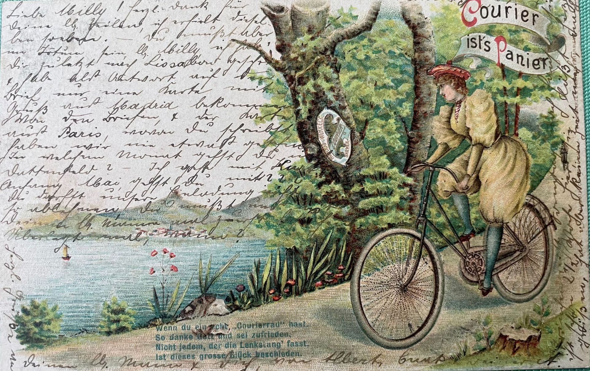 Many years ago, people used bicycles to travel long distances. To impress others, the riders bought a postcard and used the Post Offices in small and big towns on the way to have it certified with a simple stamp on the card. Coming home, they proudly showed the route for example, from Munich in Germany to Paris in France. I think this was a lovely way to record a journey. I have many such postcards in my archive.