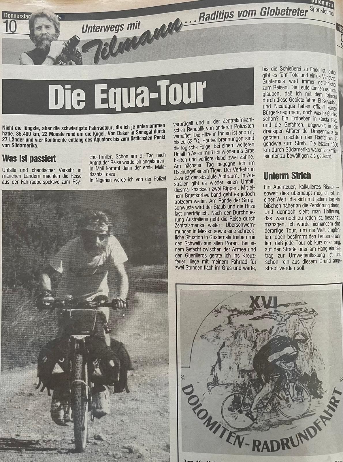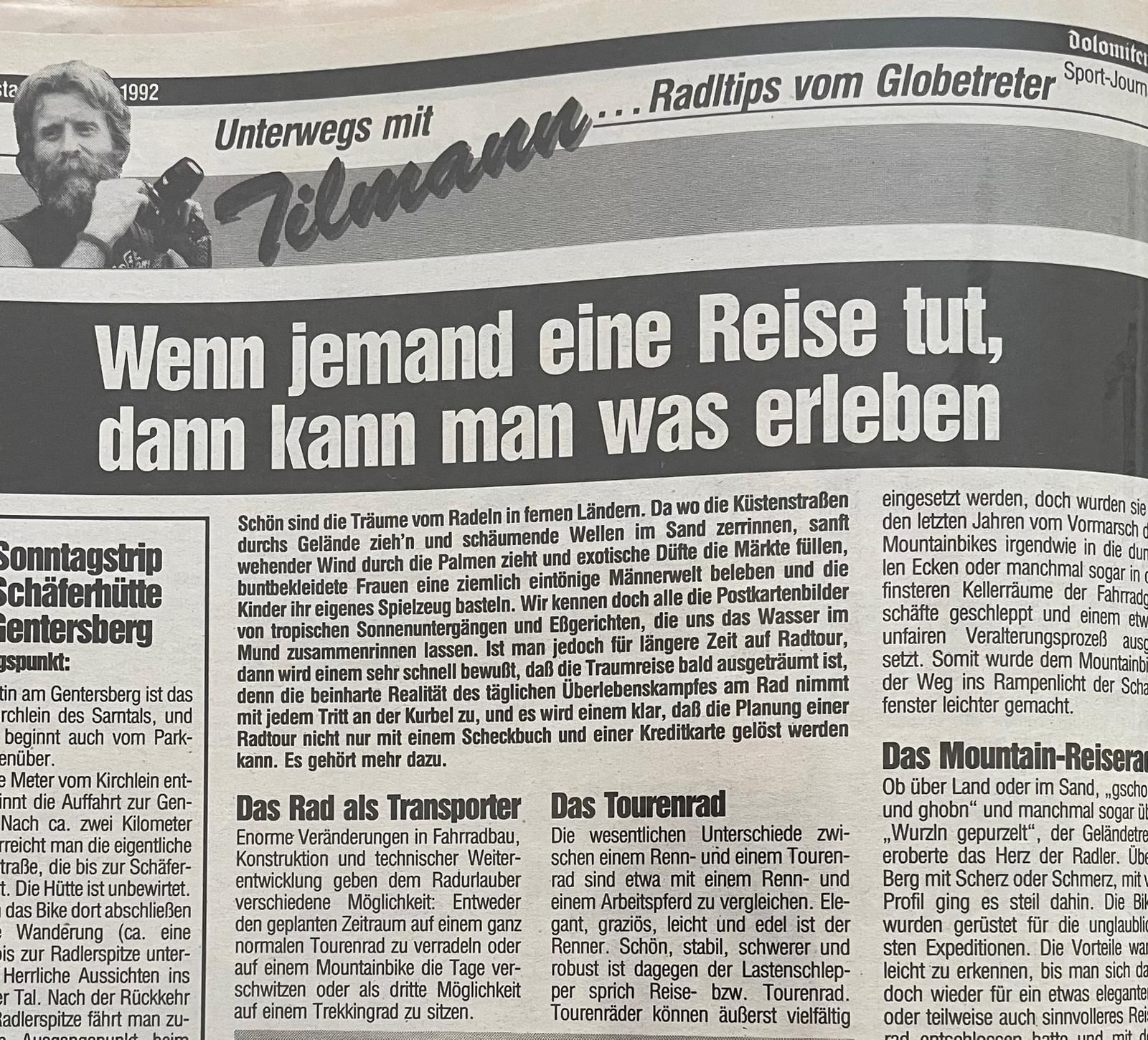 Meine lange Fahrradtour von der Antarktis in die Arktis ging mit meiner Arbeit für das schwedische Filmteam in den arktischen Regionen der Welt zu Ende. Gedanken für ein neues Erlebnis und Abenteuer weg vom Kuchen backen und Suppen kochen wirbelten in meinem Kopf herum. Schreiben und Fotografieren waren mein Traum und realistisch auch umsetzbar. Ich hatte schon einige Berichte geschrieben und auch publiziert doch fehlten mir die Kontakte zu den Medien. Ich war überzeugt, dass meine Aktivitäten als freier Mitarbeiter und Mountain Biker zum Erfolg führen könnten. Während meiner Fahrradtour zurück nach Südtirol hatte ich viel Zeit um mir ein Konzept im Kopf auszuklügeln wie ich diese Hürde bewältigen könnte. Mein Optimismus und mein Mut, Neues zu probieren ist mir immer wie eine treue Seele beigestanden. Es war Zufall, dass ich in der Südtiroler Tageszeitung den “Dolomiten“eine Annonce für freie Mitarbeiter gesehen habe. Mit einem Essay und Bildmaterial stellte ich mich in der Redaktion vor. Meine Ideen und wie ich mir diese Zusammenarbeit vorstellte wurden bisschen hin und her gerückt und ich hatte einen neuen Job als Mitarbeiter im Athesia Verlag. Meine Aufgabe war es den Lesern das Thema Radreisen mit Kurzgeschichten von meinen Reisen näher zu bringen. Aus meiner Perspektive war Südtirol zu dem Zeitpunkt das Traumland in Europa um Mountainbike Touren anzubieten. Die Landschaft, die Infrastruktur, endlose Möglichkeiten mit dem Mountainbike durch die wunderbare Bergwelt zu streifen waren meine Gründe als Journalist und Mountainbiker in Südtirol zu arbeiten.