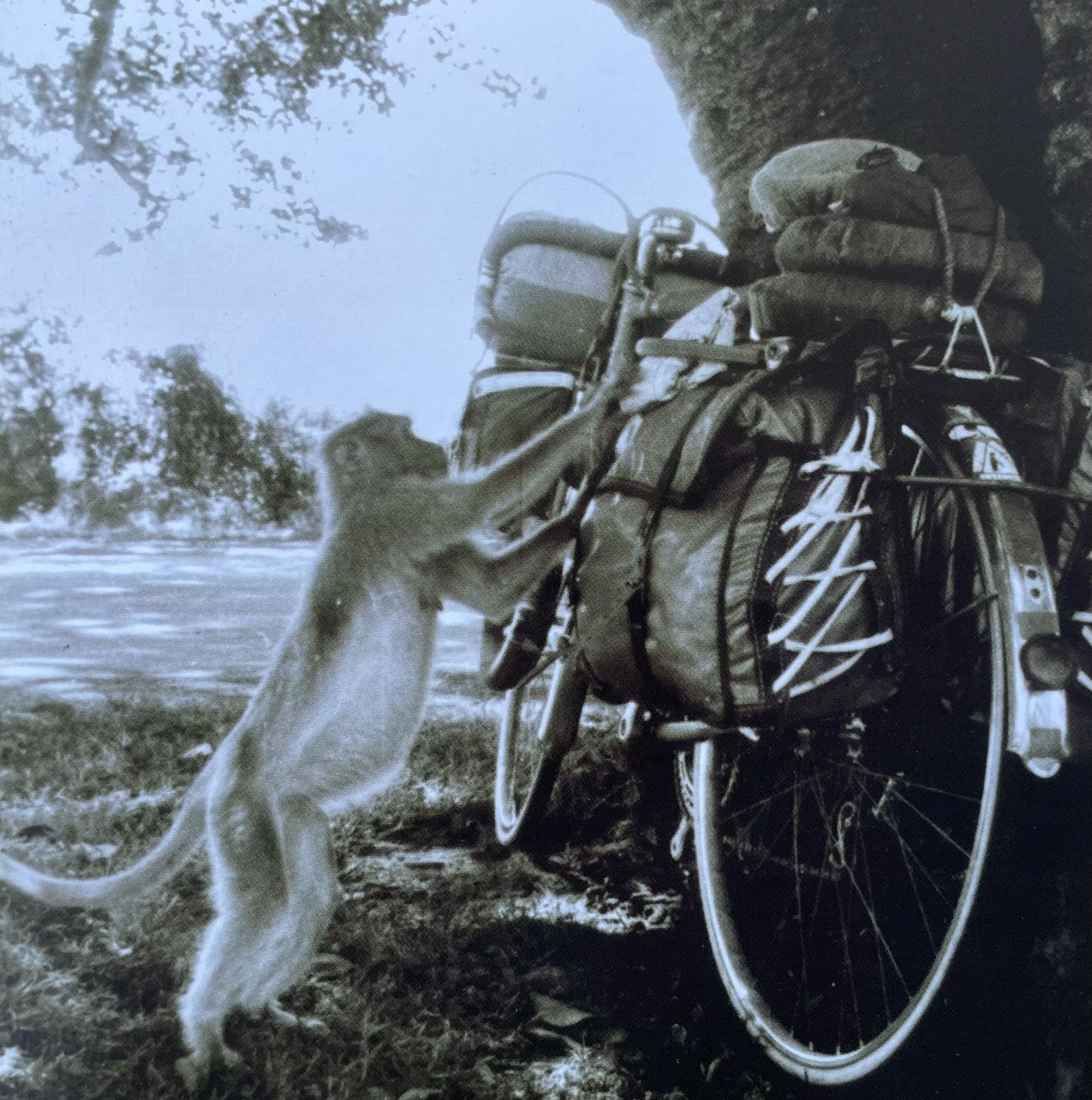 Tausende Flüchtlinge auf Wanderschaft mit Kamelen, in Bussen und auf allerlei Fahrzeugen, also alles was Räder hatte wurde benützt um dem Einmarsch der Russen in Afghanistan zu entkommen. Das Ziel war nicht abzusehen doch zuerst mussten die Menschen die Wüste Baluschistan eine der ärmsten Gegenden Pakistans durchqueren. Für mich als Radfahrer boten sich Bilder des Grauens. Menschen auf der Flucht die gar nicht wussten wie es weiter gehen wird. Mein tägliches Leben auf und mit dem Fahrrad war hingegen einfach. Wasser und Essen habe ich von den Händlern die ihre Waren von ihren Fahrrädern verkauften bekommen. Zudem wusste ich wo ich mein Ziel und ich hatte ein Visum für den Iran. Bei meiner Ankunft an der Grenzstation zum Iran wurde es dann richtig lustig. Ein nicht sehr höflicher Beamter forderte mich auf mit dem Fahrrad in einem Zimmer Platz zu nehmen. Seine erste Frage lautete was und welche Menge Drogen ich in den Panniers mitgebracht habe. Ich habe keine Drogen antwortete ich. Du musst Drogen bei Dir haben, denn Ihr Hippies kift jeden Tag meinte er. Der Beamte setzte noch einen drauf und meinte sag mir wo du das Zeug versteckt hast, dass würde mir die Sucherei ersparen. Nach der Untersuchung bekam ich einen Stempel in meinen Pass und ich wurde aufgefordert die Grenze zu verlassen. Mit den Worten “and dont come back again" wurde ich in die Stadt Zahedan geschickt. Dort gab es Hotels und Restaurants um meinem Körper Rast und Nahrung zuzuführen. Die Durchquerung der Provinz Baluchistan in Pakistan war anstrengend und sehr gefährlich. Bewaffnete Banden in gestohlenen Autos waren keine Seltenheit. Was ich auf meinem Rad hatte war für diese Typen keine Beute. Ich hatte ja zu diesem Zeitpunkt 1980 keinen Laptop oder gar ein Mobile mit. Die Gangster hatten es auf Geschäftsleute abgesehen die Geld, Gold und Schmuck aus Afghanistan mitschleppten. Egal, ich wollte durch dieses Gebiet fahren.