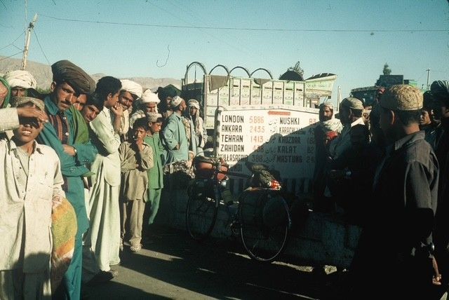 Arriving in a country by bicycle is always very interesting. Everything is different. People, animals, nature, land, culture, food and there are unexpected happenings and adventures. Afterall that is the reason why I travel by bike. The world is a fantastic place to visit. Travelling from Lahore to Quetta and on to Zahedan crossing the Pakistan/Iran border was certainly an eyeopener. The officer checking my papers and panniers was very rude. I had the feeling he tried to get me upset. The only person really upset was the officer going through my personal belongings because he didn’t find what he was looking for. As the search went on he got very angry. He came to me and said I am going to check your heartrate. Pressing his hand on my chest he looked me straight in the eyes. We stood there motionless. I felt his hand pressing harder on my chest looking eye to eye. He wanted to feel if my heart was beating faster due to his search of my belongings. I felt like spitting in his face. About 6 weeks earlier I have spent 2 months in an Indian Ashram and I learned the art of controlled breathing or “Pranayama. It is a very effective way of breathing to calm your mind. He didn’t know anything about that he had a gun and a pistol on his body, so that is most probably all he knew. He did not find any “dope.” Pack up and ride your bike in direction Zahedan and don’t come back. Many Police checkpoints and the constant explanation what I was doing in Iran with a bicycle were very nervy. Arriving in Zahedan I found a little Motel near a supermarket with a camping place. I put my tent right there, had a shower and went in direction supermarket to find a restaurant. The security guard mentioned to be very careful as the Revolutionary Guards were hunting down Americans. There are 52 US hostages in the US Embassy, so be careful. 200m further a car stopped right next to me and a young female hidden in chador got out of the car came right up to me and said. Are you American? No! I said I am Australian. Show me your passport. After she had a look at my passport she walked towards the car and I saw 5 other people sitting inside the car with their guns at the ready. You’re lucky not to be an American Bastard otherwise we would have shot you dead right here